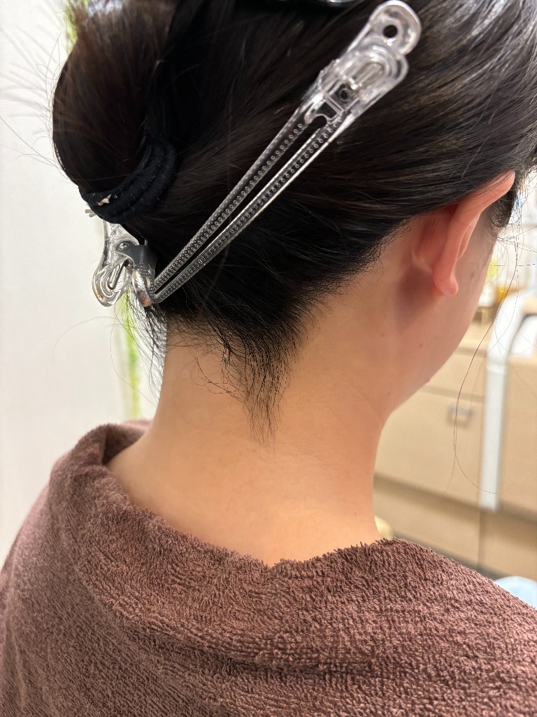素敵な襟足のお写真をいただきました。フォーマルなmw型を作るのが今回の目的です。
