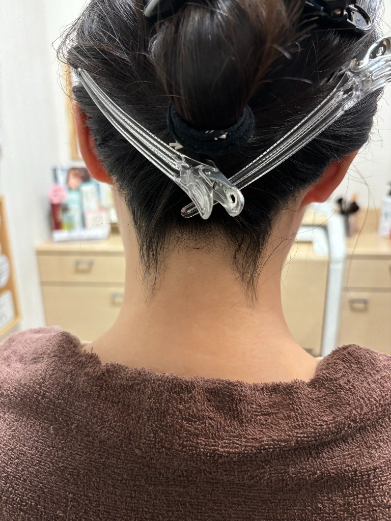 日頃からアルカリ剤の入っていない香草カラーをされている上に、究極のトリートメント、オラプレックスをされているので髪の傷みもなく、サラサラツヤツヤに仕上がりました。