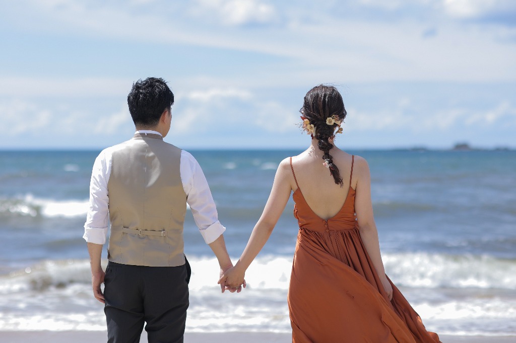 昨年、九州の海岸で前撮りをなさった花嫁様が、今日は3月の挙式に向けて2回コースでブライダルシェービングにご来店。楽しみにしていた前撮りのお写真を拝見。幸せがあふれていました。背中もピカピカです。
