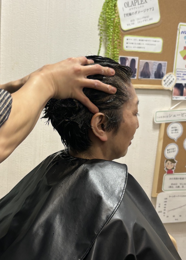 栄養のあるトリートメント剤でたっぷり地肌をマッサージ。