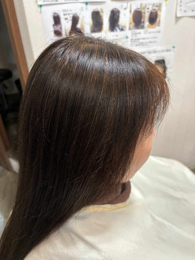 ヘナは本来オレンジ色。白髪が少ない方はこれだけでOKな方もおられます(写真)でも黒く染めたい方はオレンジの上に天然の黒、茶色を乗せて白髪を染めます。
